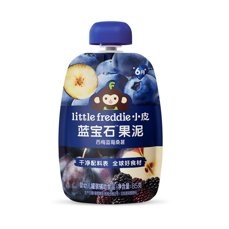 英国 小皮(Little Freddie)蓝宝石果泥 西梅蓝莓桑葚 85g